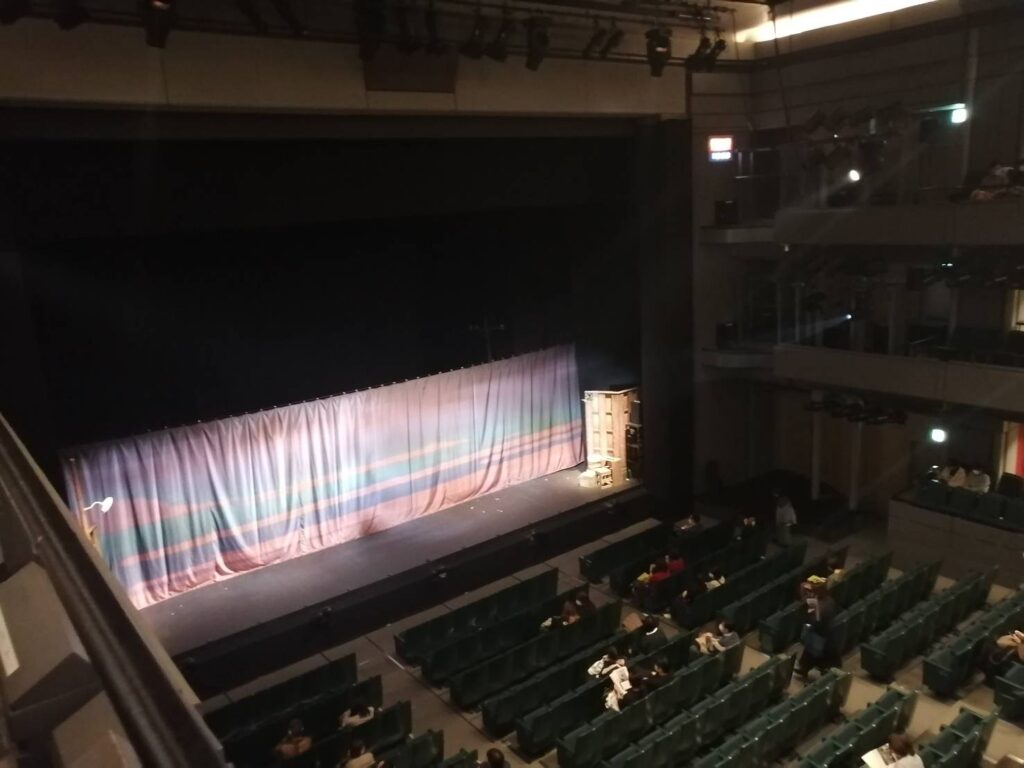 身を乗り出しすぎると、隣の人に迷惑なので、ぐっと我慢しました。そのため下手の芝居は一部見えていません。コクーンシートは安いけど、舞台の内容によってはこうしたデメリットがあります。